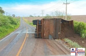 Na manhã desta sexta-feira (20), um caminhão tombou na rodovia PR-364, no trecho