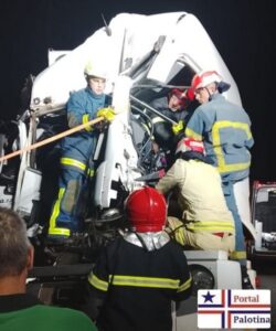 Na noite desta segunda-feira (23), um caminhão de ração se envolveu em um