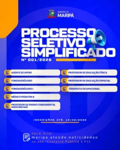 A Prefeitura de Maripá está com Processo Seletivo Simplificado aberto para contratação temporária