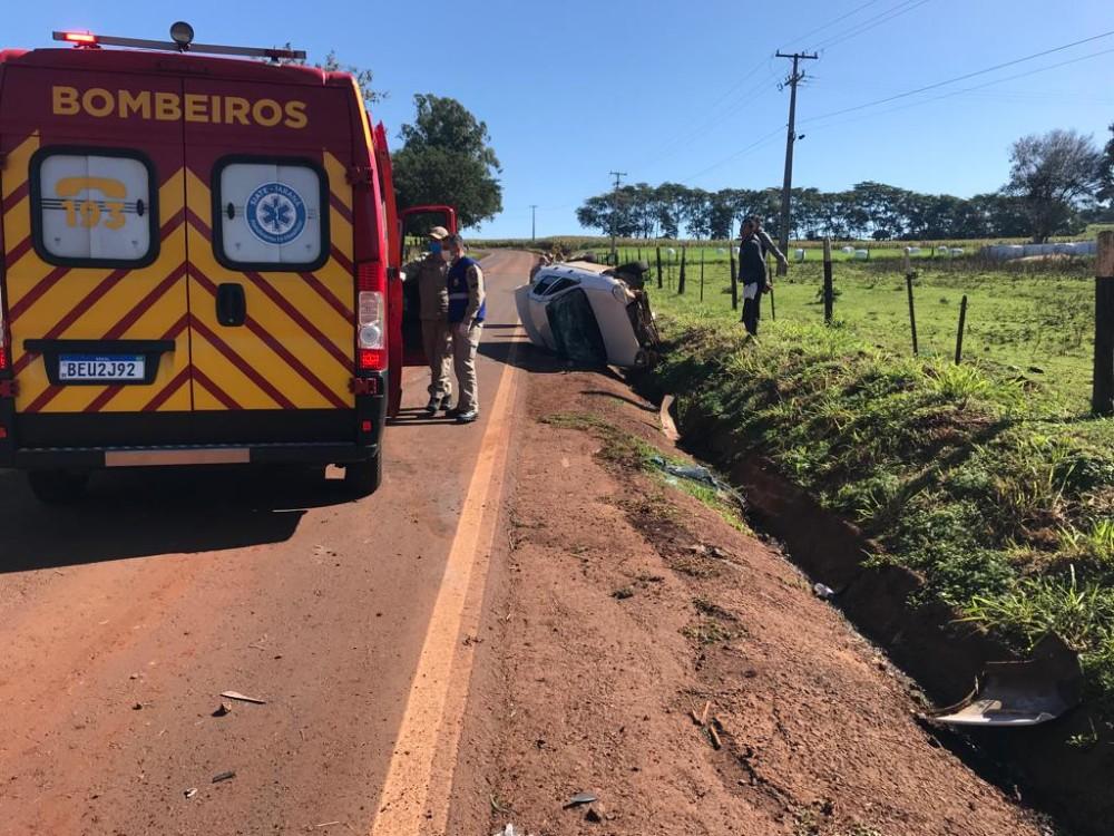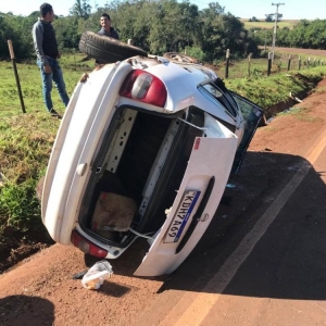 Pouco antes do meio-dia, um novo capotamento, desta feita envolvendo um Corsa, placas Brasil, KDH7A69, conduzido por uma mulher, que seguia no sentido ao trevo de Iguiporã.