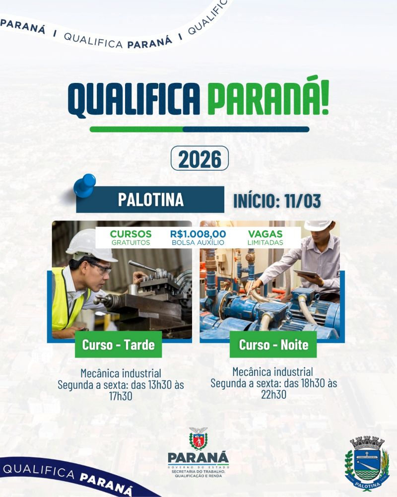 A Agência do Trabalhador de Palotina está com inscrições abertas para o curso de Mecânica Industrial, dentro do programa Qualifica Paraná 2026. A capacitação terá início no dia 11 de março e será realizada no município de Palotina.
