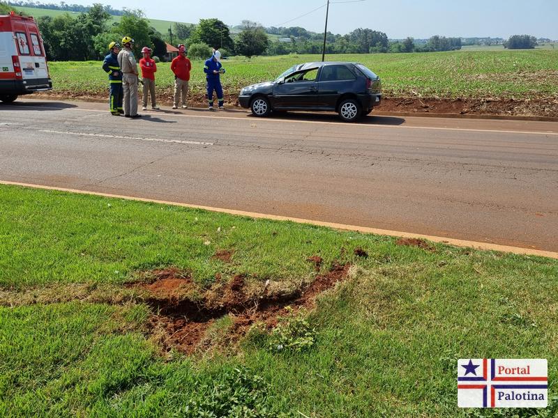Envolveu-se no sinistro um Gol com placa Mercosul, onde conforme informações o condutor seguia sentido a rodovia PR182 e acabou perdendo o controle da direção, subiu no canteiro e acabou tombando, parando na posta contraria.