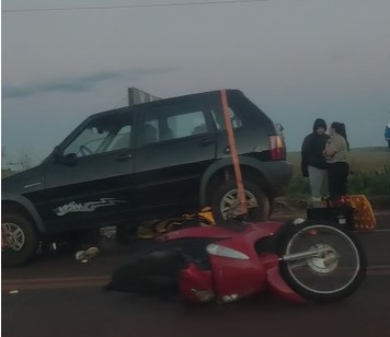 O sinistro aconteceu próximo ao trevo da C.Vale e conforme as primeira informações envolveu um Uno e uma Motocicleta.