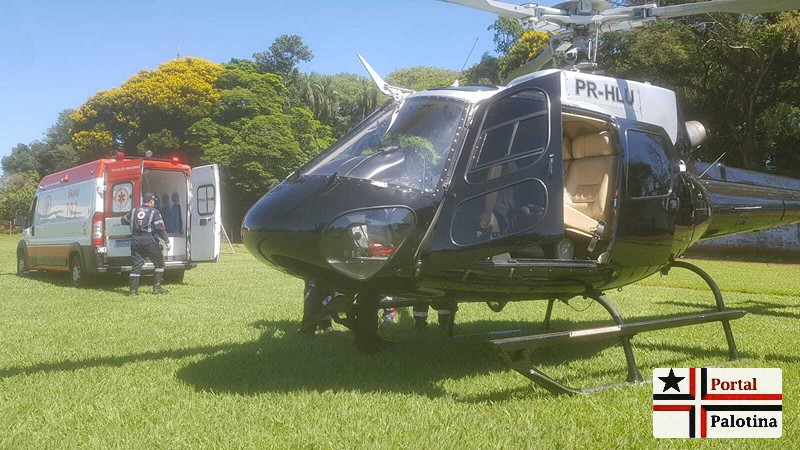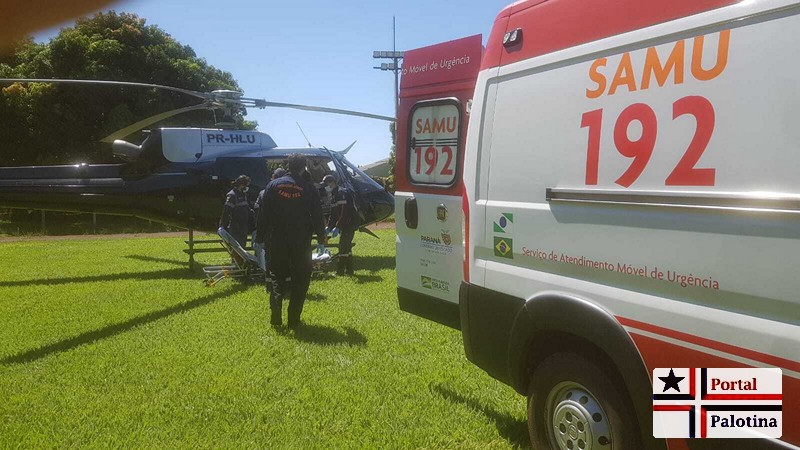 O SAMU de Palotina foi quem transferiu a paciente do Hospital Municipal ate o estádio Municipal onde se encontrava o helicóptero do CONSAMU.