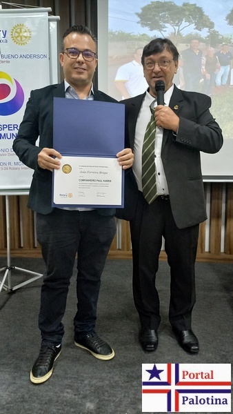 Na noite ainda foi realizada a entrega do título Paul Harris ao companheiro João Ferreira Braga Jr., que recebeu das mãos do rotariano e presidente do Rotary Club de terra Roxa gestão 2022/2023, Sr.