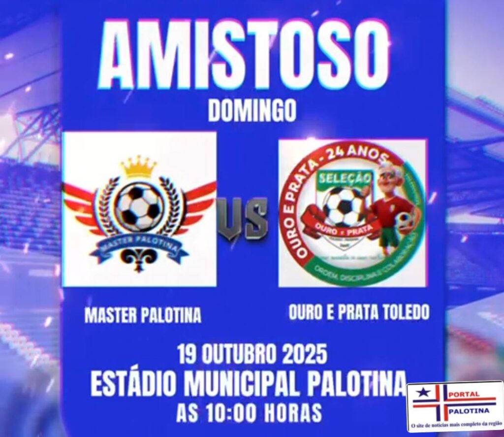 Neste domingo, dia 19 de outubro, apartir das 9h45min, o Estádio Municipal de Palotina será palco de um grande amistoso entre Master Palotina versos Master Ouro e Prata, da cidade de Toledo.