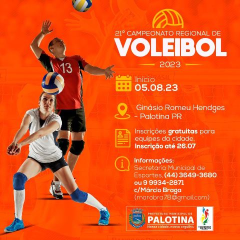 O 21º Campeonato Regional de Voleibol está chegando, e a Secretaria Municipal de Esportes de Palotina quer convidar você e sua equipe para participar!