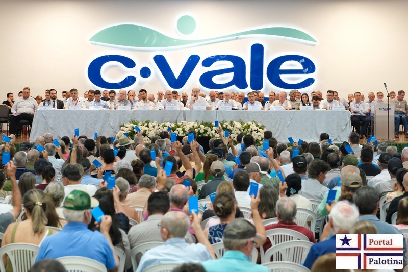 A C.Vale ampliou sobras e faturamento em 2025 mesmo enfrentando os efeitos de estiagens, gripe aviária e do tarifaço norte-americano./ A cooperativa ampliou as receitas em 14 por cento e faturou 25 bilhões e 200 milhões de reais no ano passado./ As sobras cresceram 83 por cento e os associados vão receber mais de 274 milhões de reais em retorno e outros benefícios./ O relatório com o desempenho da C.Vale em 2025 foi divulgado em assembleia com 800 pessoas na sexta-feira, dia 6, em Palotina./ O presidente do Conselho de Administração da C.Vale Alfredo Lang gostou dos resultados apesar de dizer que queria um desempenho ainda melhor./