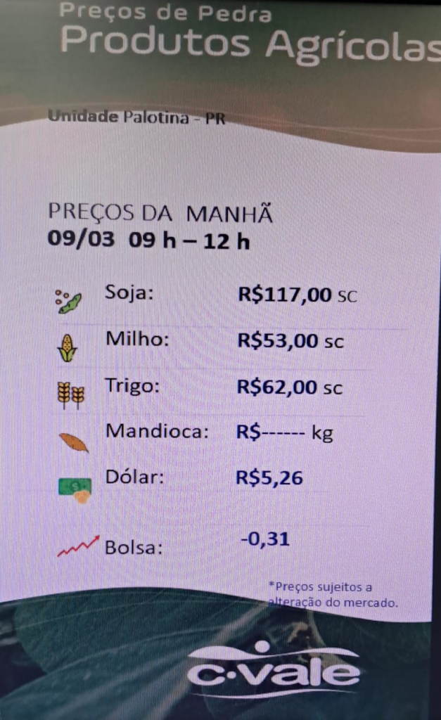 C. Vale informa a cotação Agrícola