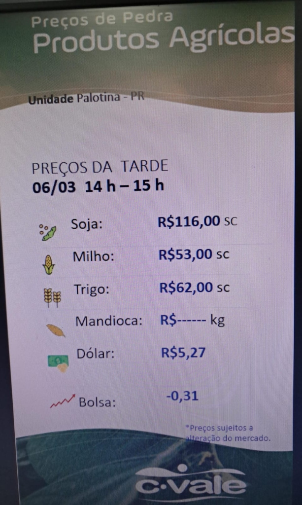 C. Vale informa a cotação Agrícola