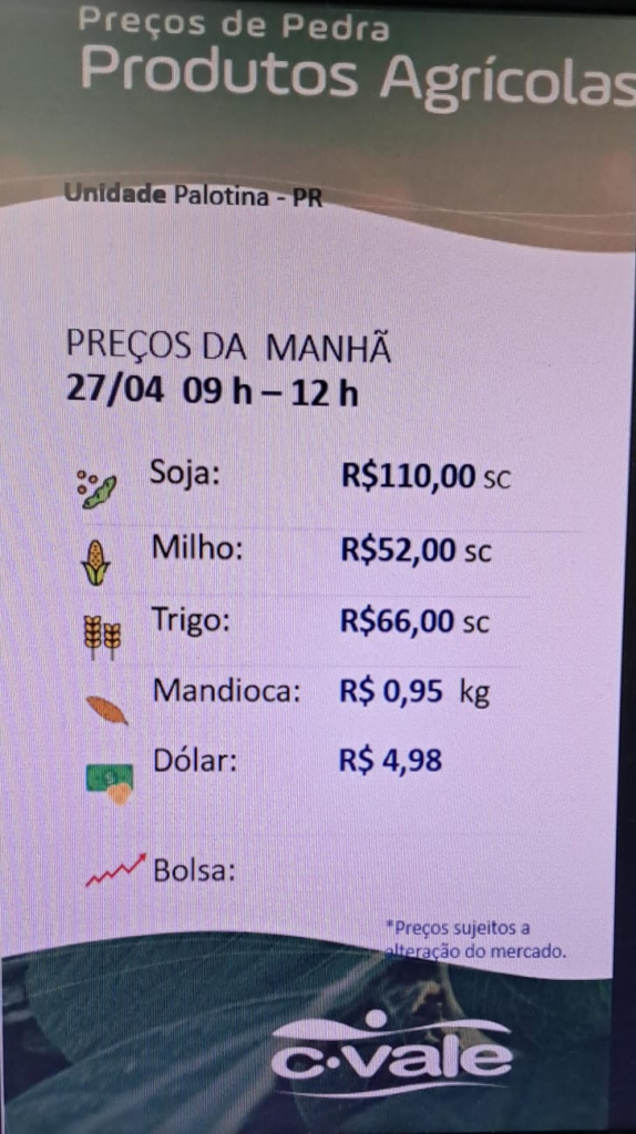 C. Vale informa a cotação Agrícola
