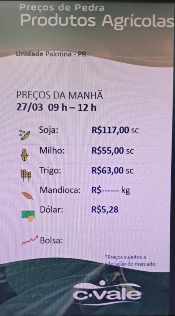 C. Vale informa a cotação Agrícola
