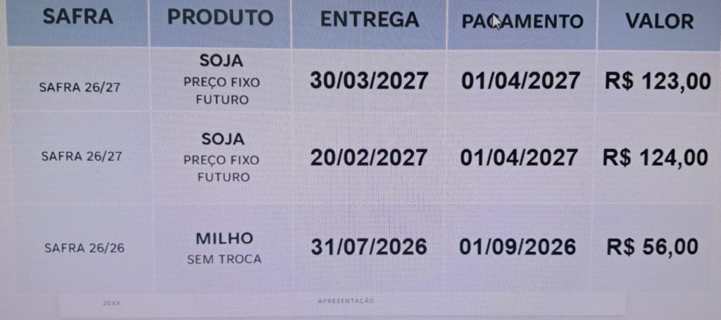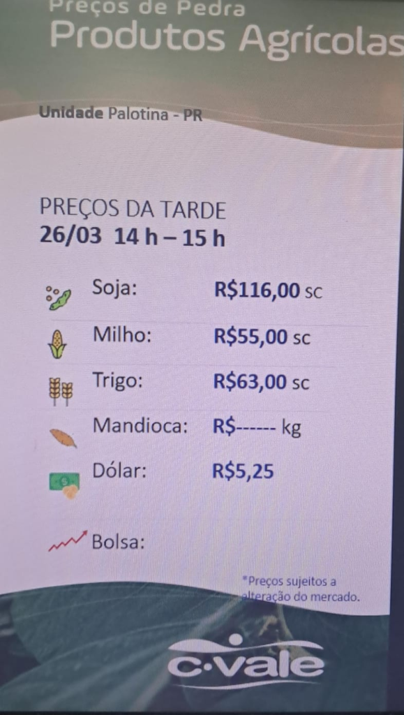 C. Vale informa a cotação Agrícola