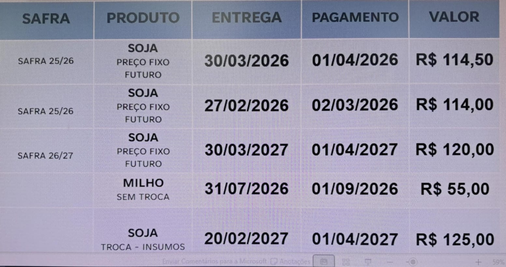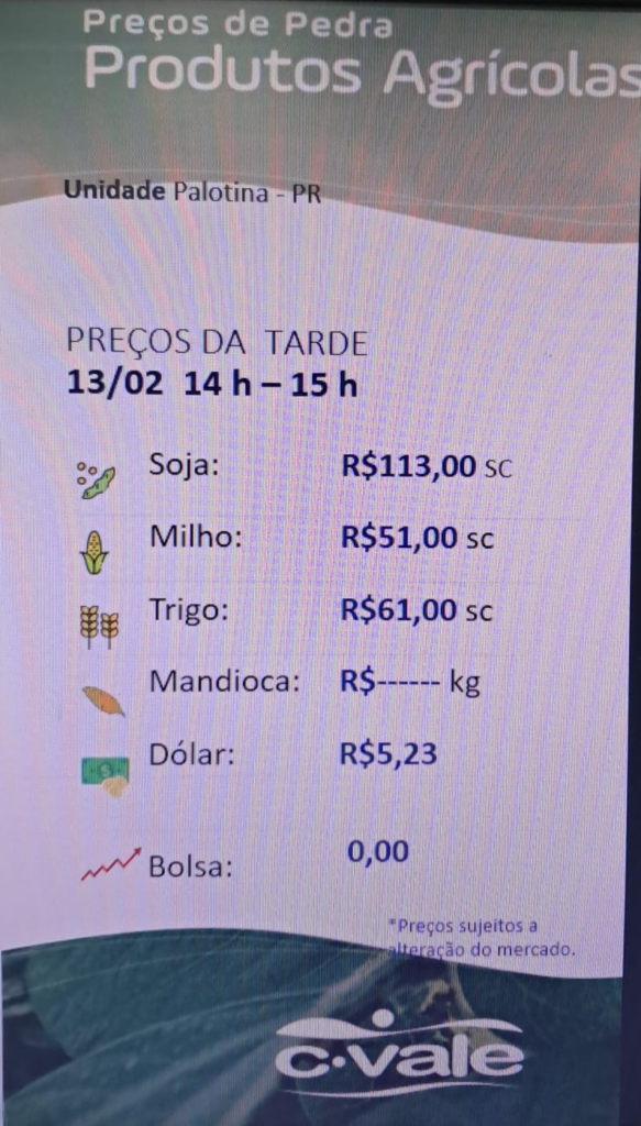 C. Vale informa a cotação Agrícola
