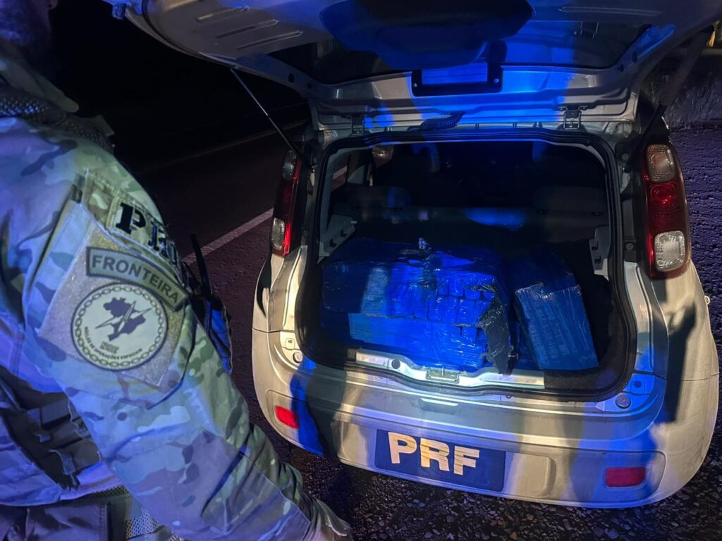 A Polícia Rodoviária Federal (PRF) apreendeu, na noite de hoje (3), um Fiat Uno carregado com maconha.