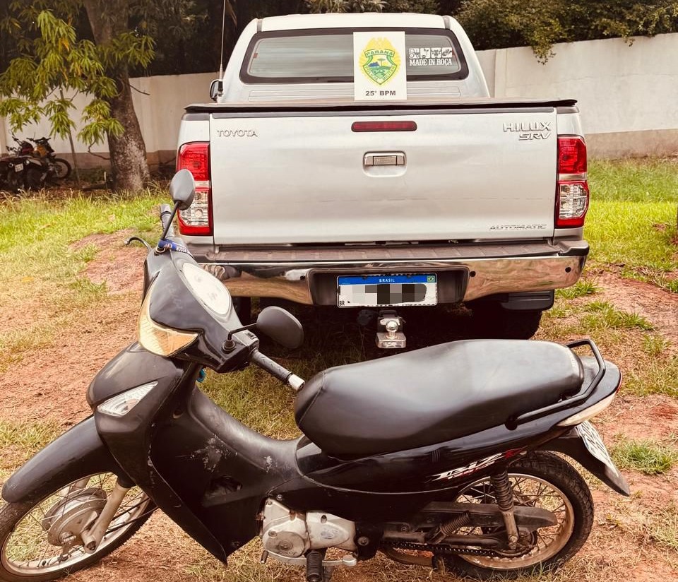 Durante a ação, os autores subtraíram uma caminhonete Toyota Hilux e uma motocicleta Yamaha XT. Após o crime, três dos suspeitos deixaram a residência utilizando os veículos roubados.