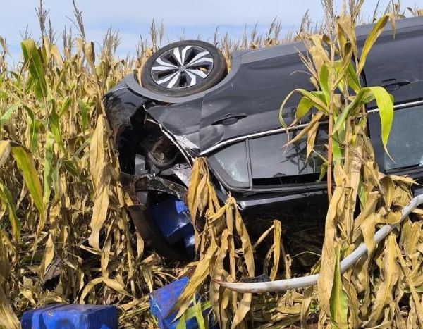 Durante o acompanhamento tático, o condutor do VW/ T Cross, perdeu o controle da direção em virtude do trabalho da suspensão traseira, vindo a capotar em meio a plantação de milho e continuar sua fuga a pé.