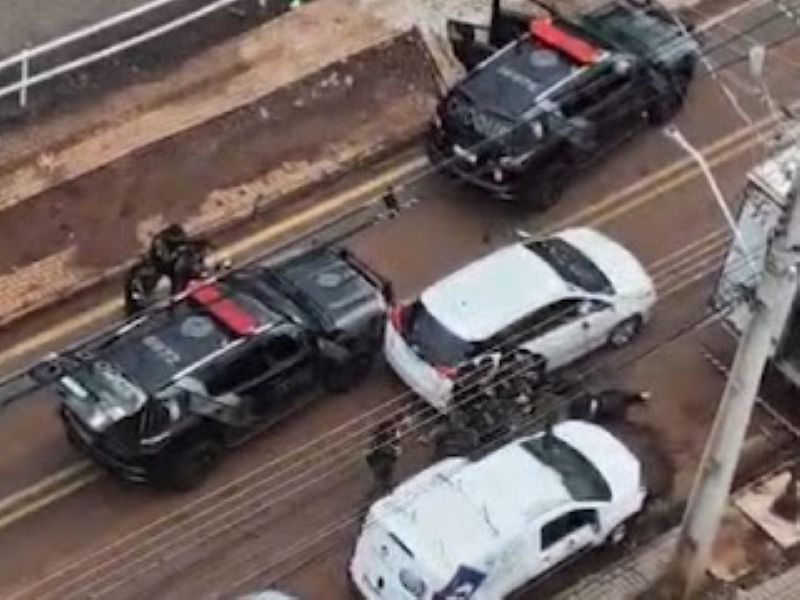 Ainda conforme as imagens, os policiais cercam um veículo que estaria envolvido na ocorrência, enquanto mantêm a área sob controle durante o tiroteio. A ação mobilizou diversas equipes da Polícia Militar.