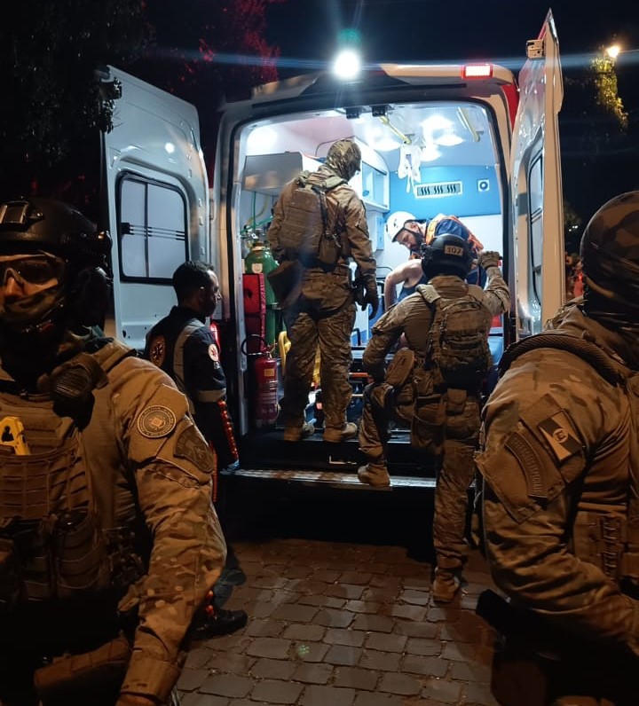 Diante do cenário, foi necessária o acionamento da equipe do BOPE, que realizou uma intervenção técnica, conseguindo retirar o indivíduo do local de forma segura, sem que houvesse feridos entre os profissionais envolvidos.