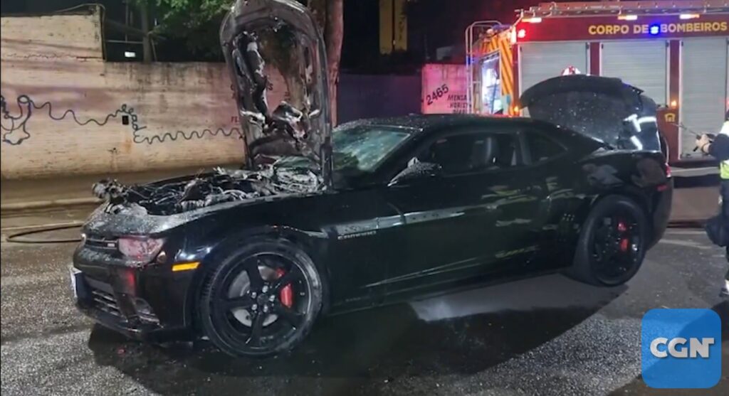 De acordo com informações apuradas no local, um Chevrolet Camaro teve a parte do motor e o capô completamente danificados pelas chamas. A princípio, o fogo teria começado na parte elétrica do veículo.