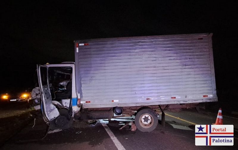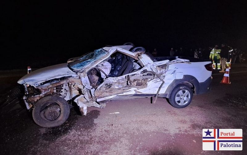 De acordo com as informações, um homem, conduzindo uma Fiat Strada, morreu após uma colisão frontal contra um caminhão.