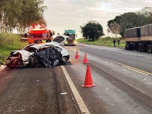 Dois jovens morreram na madrugada de sexta-feira (20), na rodovia BR-376, altura do km 40,9, no município de Nova Londrina, no noroeste do Paraná. A colisão frontal envolveu um automóvel GM Celta, com placas de Querência do Norte, e um caminhão bitrem, com placas de Mandaguari.