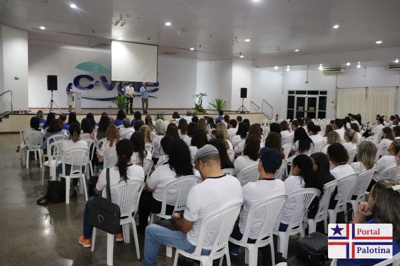 Nesta segunda-feira, dia 29, aconteceu à abertura do ano letivo da Rede Municipal de Ensino de Palotina, na Asfuca. Professores, funcionários e colaboradores participaram de uma palestra sobre autoestima, equilíbrio emocional e otimismo, ministrada pelo Doutor Meron Vaurek Junior e Doutora Sandra Aparecida dos Santos.