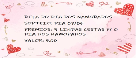 O Grêmio estudantil do CEEBJA PALOTINA está promovendo uma rifa para o dia dos namorados que além de muitos itens deliciosos, tem na cesta, vale pizza, vale manicure, vale jantar, batata recheada, vale fondie etc.