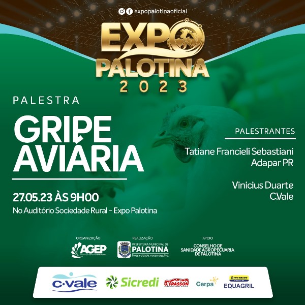 Uma das palestras é sobre um tema muito importante e que preocupa atualmente, a Gripe Aviária, uma vez que o Brasil é o maior exportador desta proteína para o mundo.