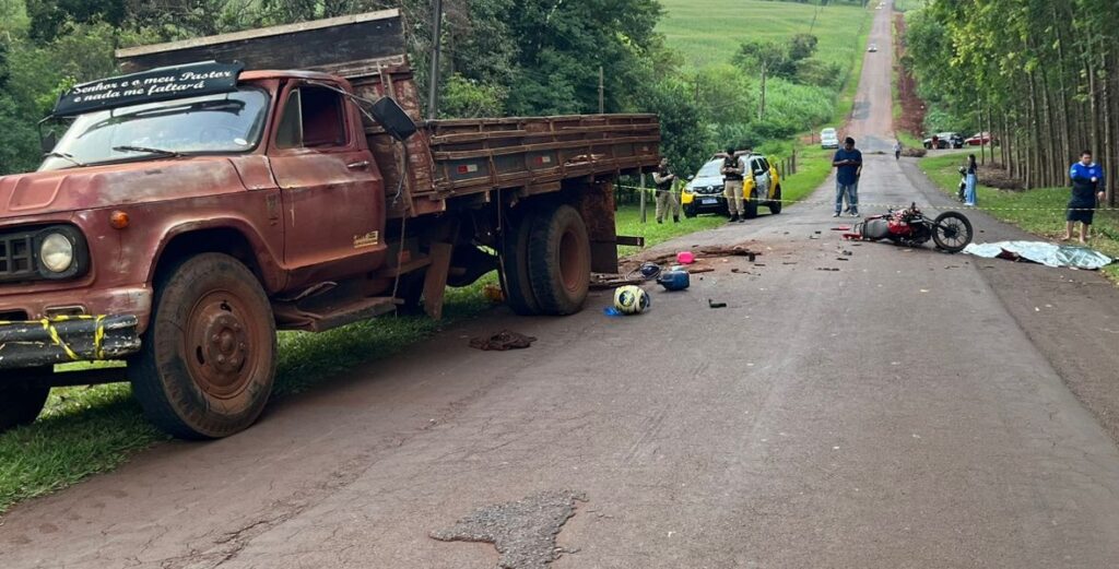 A colisão frontal envolveu um caminhão e uma motocicleta. De acordo com informações apuradas no local, o caminhão seguia no sentido Palotina a Maripá, pela sua mão de direção, quando o motociclista, que trafegava no sentido contrário, acabou colidindo frontalmente.