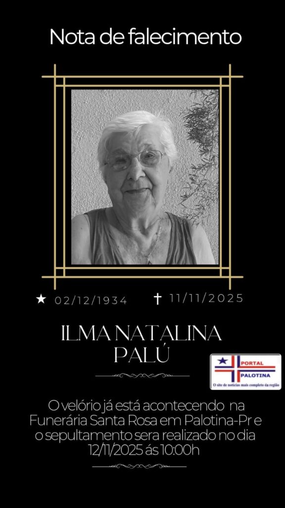 A Funerária Santa Rosa e o Portal Palotina comunicam com pesar o falecimento de Ilmanatalina Palú aos 91 anos de idade.