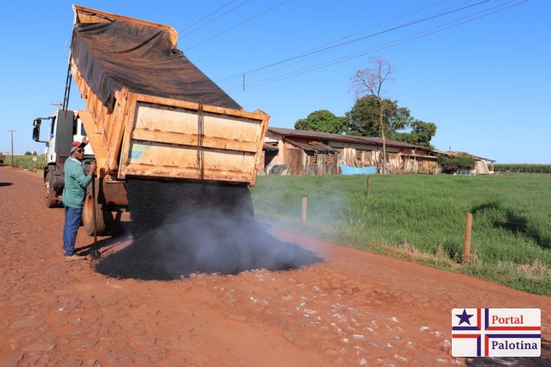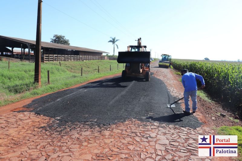 A Prefeitura de Palotina, por meio da Secretaria de Transportes e Obras Públicas realiza a manutenção do calçamento com pedras poliédricas na estrada de acesso a comunidade da Linha Água Branca.