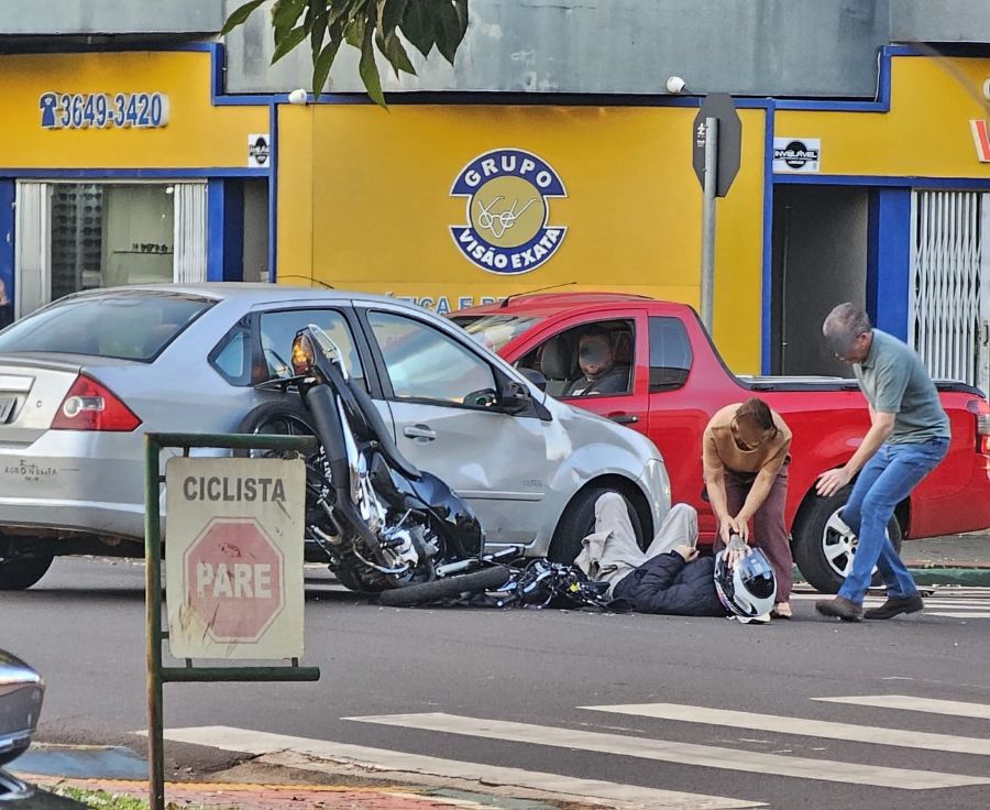 Um acidente de trânsito foi registrado na tarde desta sexta-feira (15), no centro da cidade, entre uma motocicleta e um carro. O sinistro aconteceu no cruzamento da Rua Getúlio Vargas com a Avenida Presidente Kennedy. Devido ao impacto o motociclista sofreu ferimentos e foi socorrido pela equipe do SAMU e encaminhado para atendimento hospitalar.